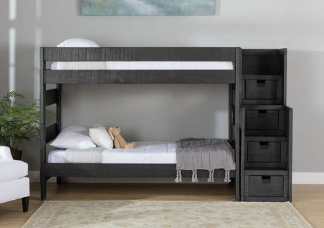 Elements International Vista Twin over Twin Bunk Bed with Staircase in Grey