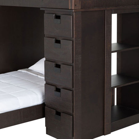 Elements International Vista Twin over Twin Super Loft Bed with Desk and Bookcase in Brown