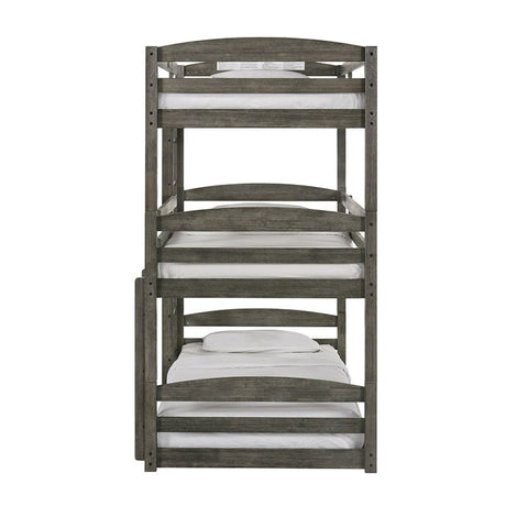 Elements International Trey Twin Over Twin Over Twin Bunk Bed in Wire Brushed Grey