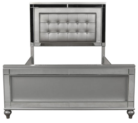 New Classic Furniture Valentino King Upholstered Lighted Bed in Silver