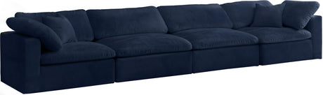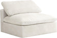 Bring home this Cozy armless chair for a fresh new look. Embrace casual elegance with this Cozy velvet cloud modular down-filled seating option. Handsome from all angles, this piece features soft cream velvet upholstery to make it an easy fit in any room. This modular piece can be combined with other items in the Cozy collection to create a seating group of your dreams. The cushions on this piece are exceptionally comfortable���and filled with down for luxury that you deserve as you rest and relax.