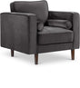 Stretch out and relax on this handsome Emily chair. This Meridian Furniture chair features wooden legs and a sturdy frame, so it's built for the long haul. Its vibrant grey velvet upholstery is a jewel tone that's simply stunning and that adds a pop of color to your day. The chair's back cushions are plump and filled with premium material to cradle you in comfort, and it comes with two roll-style pillows for helping you prop up and unwind.