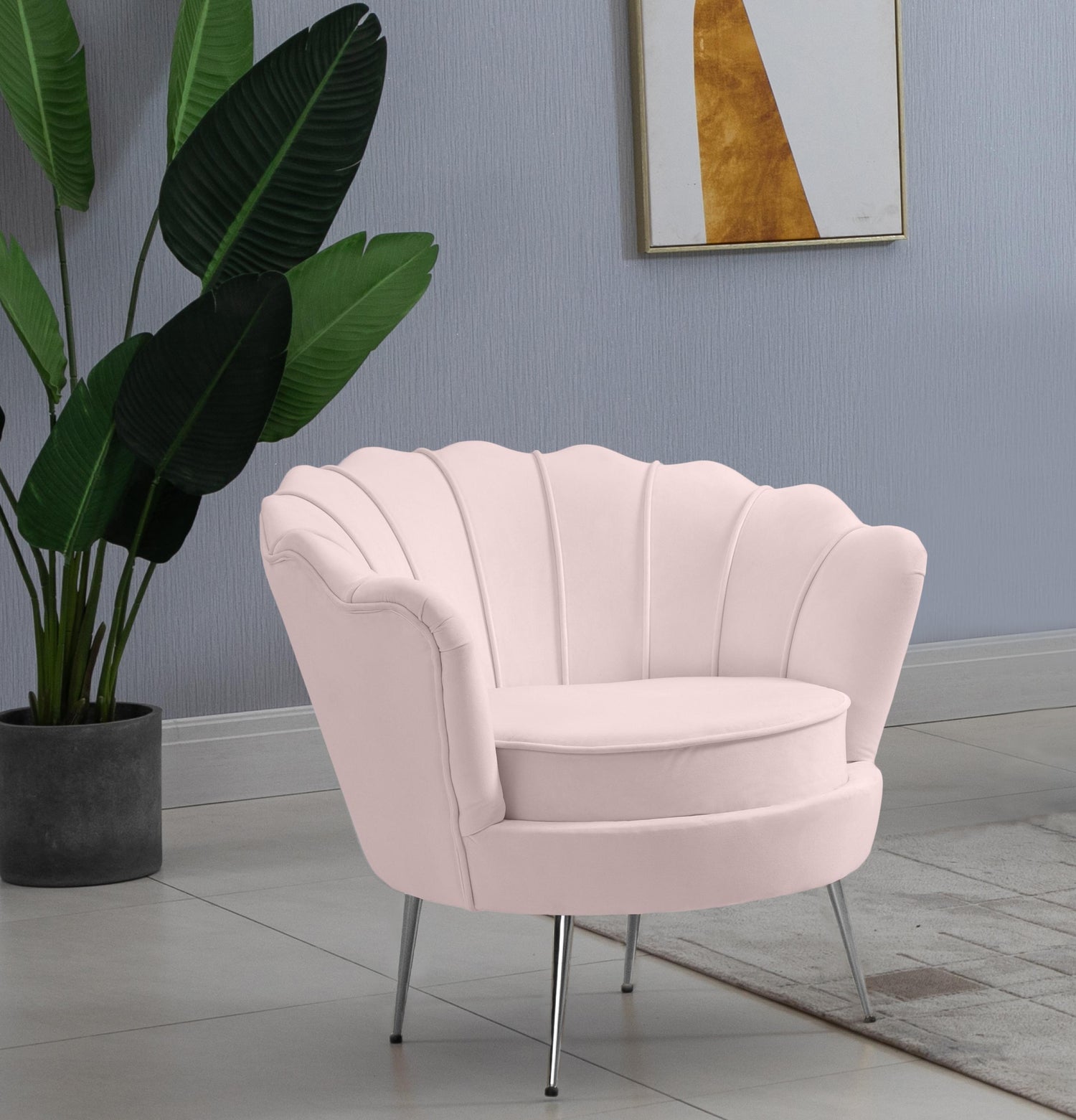 Gardenia Pink Velvet Chair is backordered and will ship as soon as it is back in stock.