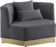 Revamp your living room, den or great room with this Marquis velvet chair. This handsome piece features a bold contemporary look that���s well at home in most modern d?�cor themes. Plump pillows add a little something extra to make you feel extra cozy. Upholstered in soft grey velvet, this piece fits in nicely with nearly any other colors in the room, and the brushed gold stainless steel base ensures its up-to-the-minute look.