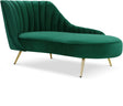 Lean back and lounge in luxurious style on this stunning Margo velvet chaise by Meridian Furniture. This contemporary chaise features plush velvet upholstery that is both classy and sumptuous against your skin, a single seat cushion and rounded arms that curve into a low, rounded back, creating a perfect, modern piece for your home. Gold stainless steel legs support this chaise and provide stunning contrast to the chaise's plush, green fabric.