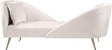 Bring glamour and old world Hollywood appeal to your space with this Nolan velvet chaise. This chaise is outfitted with soft cream velvet to give it added glitz and elegance. It rests atop gold metal legs for a touch of contemporary pizzazz, and it has two backs for a throwback feel that���s nothing short of sophisticated. Use it wherever you want to up the excitement level in your room.