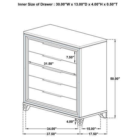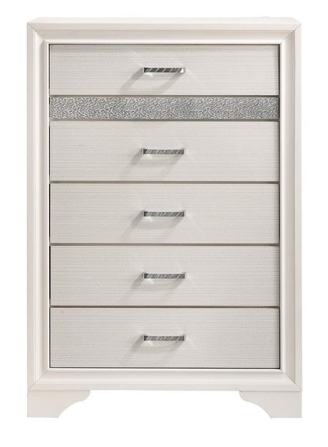 Miranda 5-drawer Chest White and Rhinestone