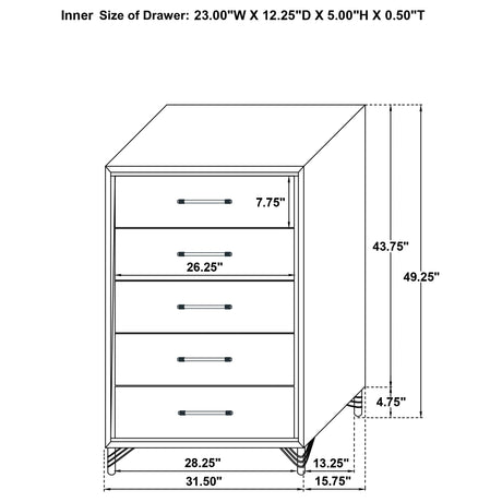 Gunnison 5-drawer Chest Silver Metallic