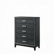 - Classic design with touches of modern aspects makes this Haiden Chest ideal for any bedroom. The piece offers a rectangular table top and five storage drawers for displaying or organizing. It also features a glamorous shimmering silver accent trim that adds richness to design. The drawer handles carryover the same shimmering silver to tie them all together to create a cohesive look. The black finish makes it easy to fit into already existing decor.