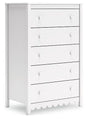 - 5 smooth-gliding drawers with vinyl-wrapped sides and back for durability