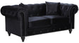 Chesterfield Black Velvet Loveseat is backordered and will ship as soon as it is back in stock.