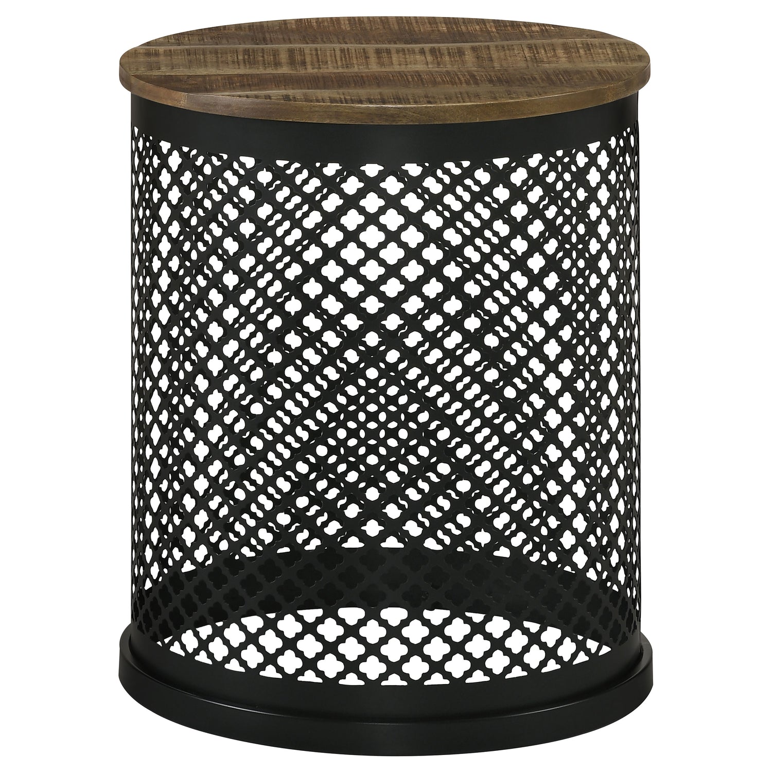 Aurora Round Accent Table with Drum Base Natural and Black