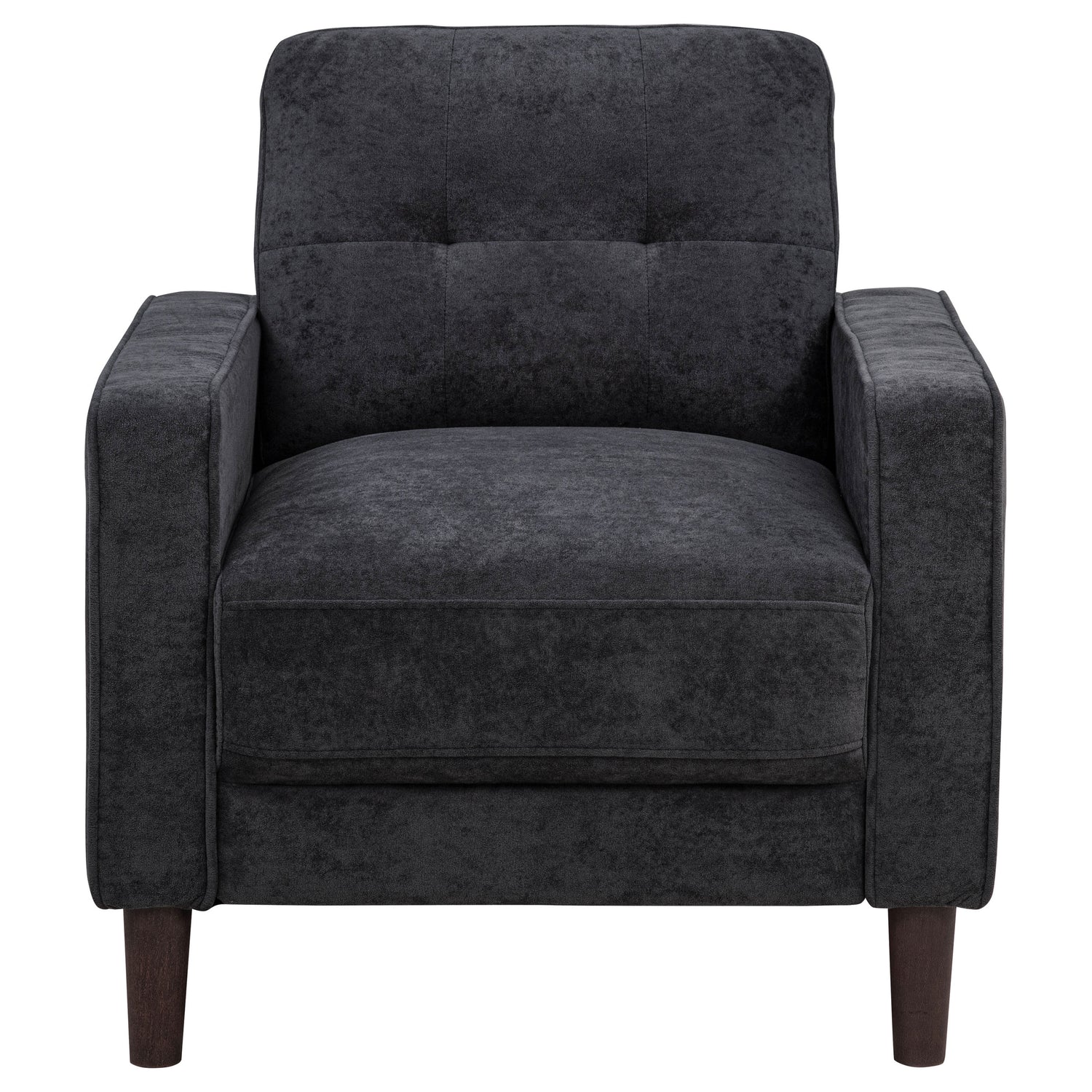 Simple yet thoughtfully detailed, this sofa set brings comfort and structure to compact spaces. Slim track arms with cord welt trim frame grid-tufted back cushions, while soft, textured upholstery creates a relaxed and inviting feel. Pocket coil seating offers lasting support, and tapered round legs provide a lifted foundation. Tailored and timeless, this collection is ideal for studio living or any room in need of space-conscious comfort. Key Features: • Sofa set with slim track arms and grid-tufted backs for clean lines and visual structure • Rust fabric adds soft texture and a versatile neutral tone to any room • Cord welt trim provides a tailored finish along arms and cushions • Pocket coil seating construction delivers consistent comfort and long-term support • Soft polyester upholstery is smooth, easy to care for, and family-friendly • Tapered round legs offer a stable, mid-century inspired lift to each piece