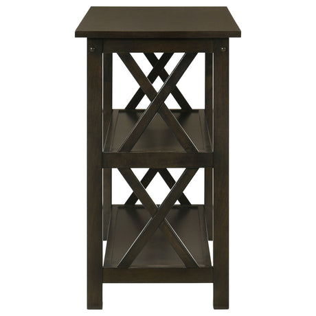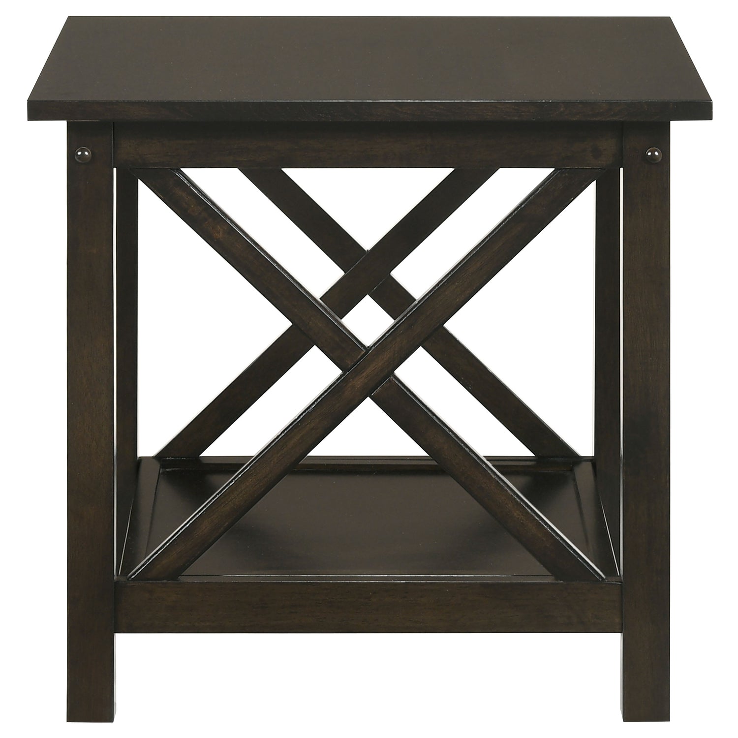 This 3-piece occasional table set includes a coffee table and two end tables, ideal for a living room or lounge. Constructed from hardwood, engineered wood, and rubberwood veneer, this set showcases a rich dark merlot finish. Each piece is designed with a lower shelf for extra storage space, while the X-shaped accents on the sides add a touch of visual appeal. This coffee table set is a perfect combination of form and function for your home. Key Features: • Three-piece coffee table set featuring a stylish coffee table and two end tables • Dark merlot finish complements any living room decor • Lower shelf provides additional storage and display space • X-shaped side accents enhance the table's overall design • Crafted from hardwood, engineered wood, and rubberwood veneer • Strong and durable construction ensures long-lasting use