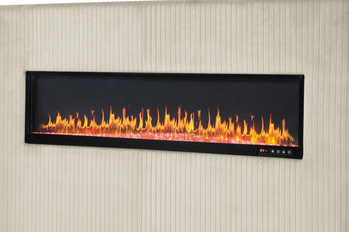 Experience the pinnacle of modern furniture technology with our unique bed, seamlessly blending style, utility, and comfort. Its headboard features a mesmerizing non-heating fireplace display in six vibrant colors, creating an unparalleled room ambiance. This bed boasts USB and Bluetooth speakers for convenience and top-quality audio. Its velvet-padded footboard and side rails, along with a tall headboard, provide a luxurious touch. Available in Grey, Blue, Beige, and Black, this revolutionary bed collection is a one-of-a-kind masterpiece you won't find elsewhere. Headboard fireplace display in 6 captivating colors (non-heating). Convenient USB and Bluetooth speakers for charging and music. Luxurious velvet upholstery on footboard and side rails. Available in four elegant colors: Grey, Blue, Beige, and Black.