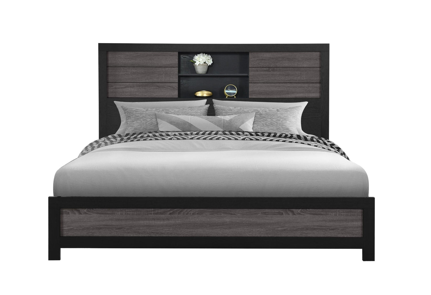 LISBON GREY/BLACK BOOKCASE KING BED is backordered and will ship as soon as it is back in stock.