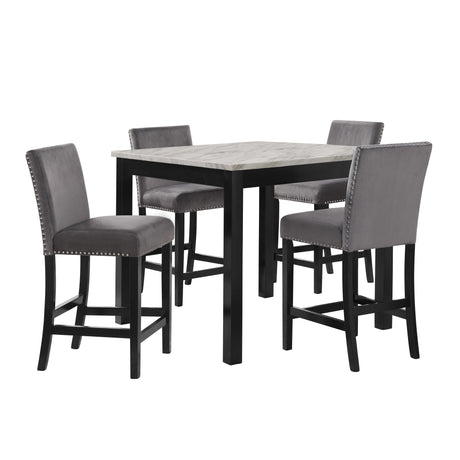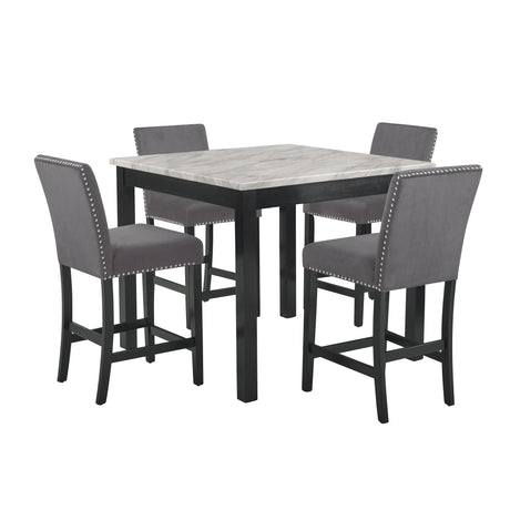 CELESTE 5PC 42" MARBLE FINISH COUNTER TABLE & 4 CHAIRS-GRAY