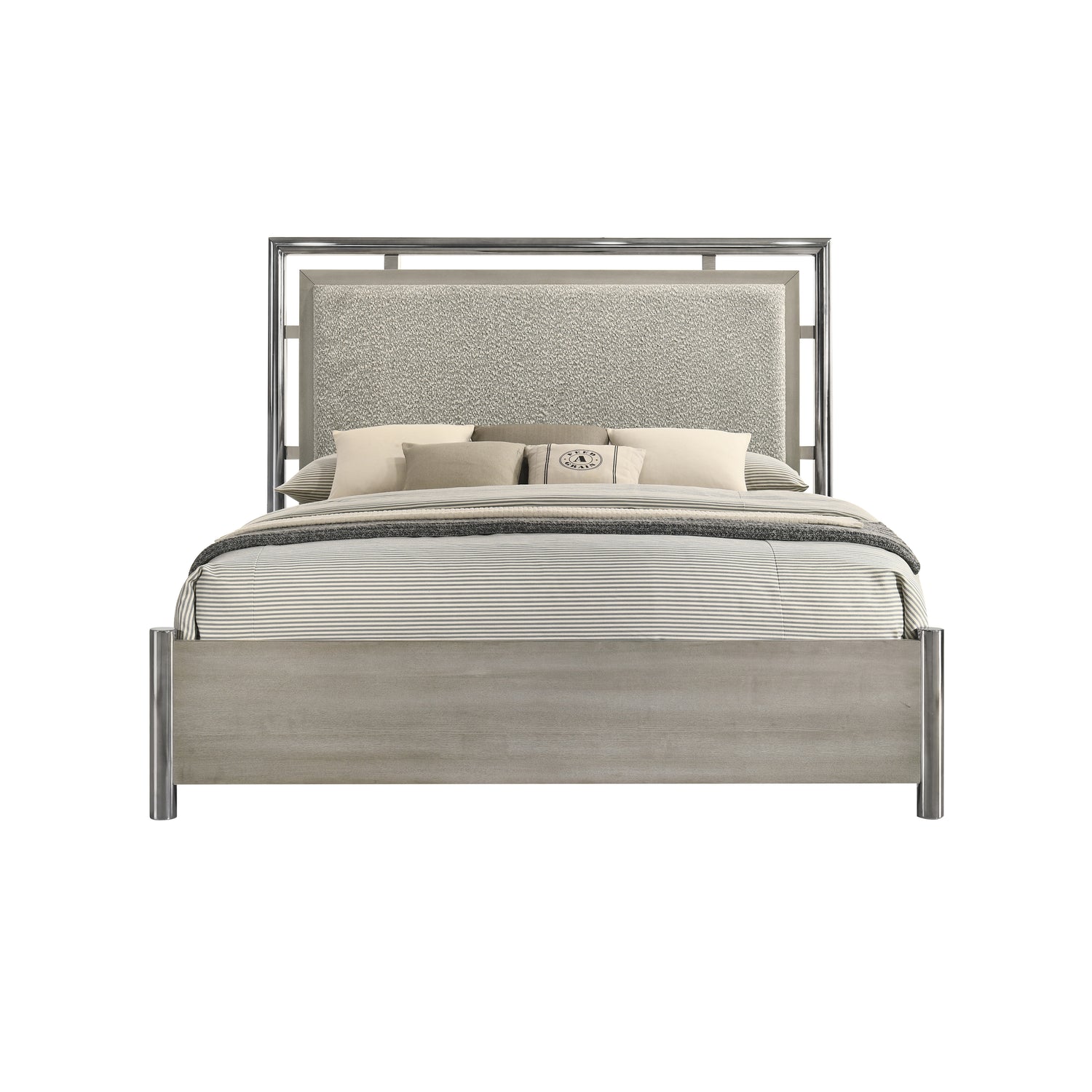 The Lennox Upholstered Bed in Gray is the ultimate combination of modern elegance and comfort for your bedroom. Crafted with premium engineered woods and eco-friendly gray ash laminate, it boasts a sleek, contemporary design that is both stylish and durable. Lustrous metallic trim accents elevate the light gray finish, adding a refined touch to its sophisticated aesthetic. The padded headboard provides a cozy and supportive spot, perfect for sitting up with a book or relaxing in comfort. With its thoughtful design and durable construction, the Lennox Bed is a striking centerpiece that enhances both style and functionality in your space.