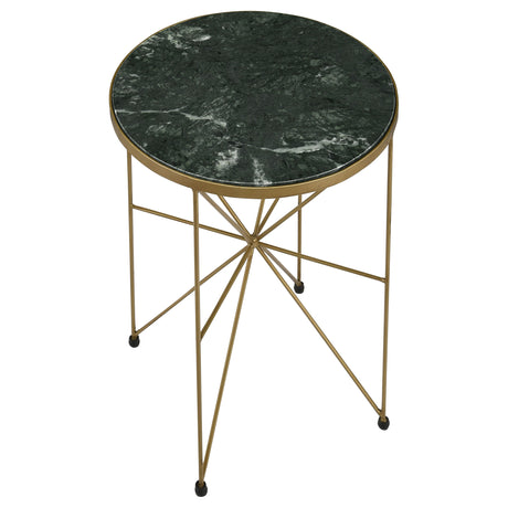 Eliska Round Accent Table with Marble Top Green and Antique Gold