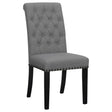 Alana Upholstered Tufted Side Chairs with Nailhead Trim (Set of 2) - Grey / Rustic Espresso is backordered and will ship as soon as it is back in stock.