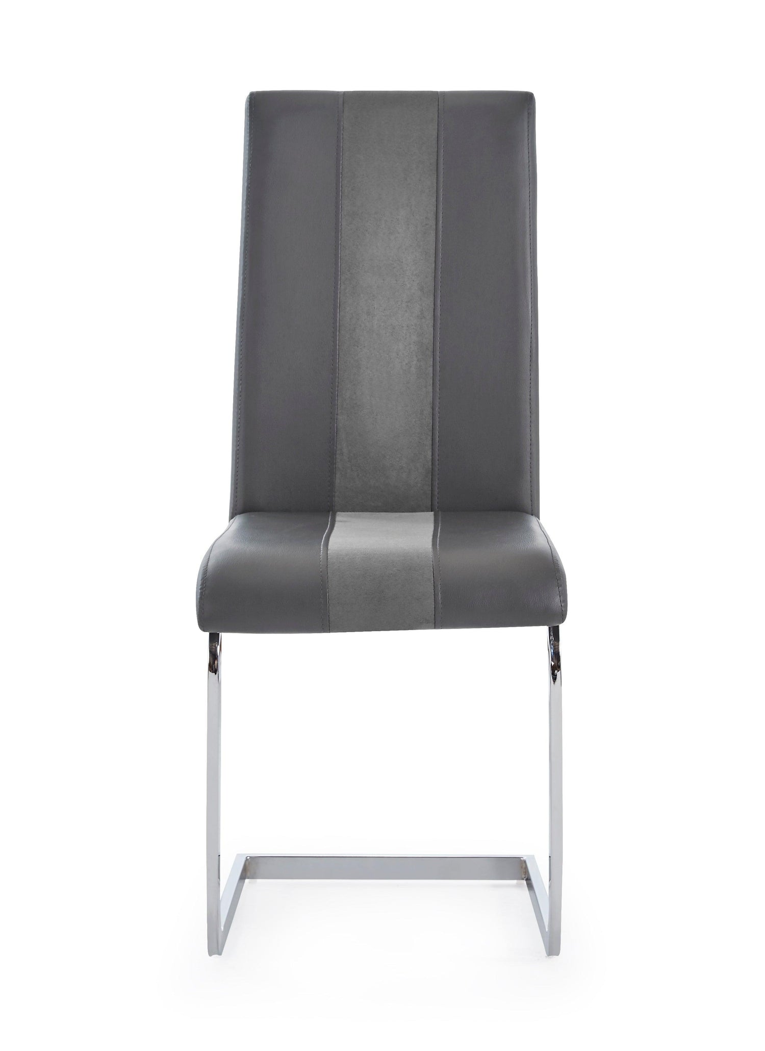 Perfect for your kitchen or breakfast nook, this two-toned dining chair will transform your room and add comfort and charm. This chair is upholstered in tones of grey faux leather (PU) and fabric, providing an eye-catching and modern twist to traditional kitchen seating. Decorating possibilities are endless with the attractive tones of this chair. Additional design elements include a sleek style silver toned metal base and ample padding, continuing the delightful look and comfy feel of this seating. Quality craftsmanship in every facet of production ensures durability and long-lasting wear. For a stylish and modern take on kitchen or dining room furnishings, this chair is a can‚Äö√†√∂‚à ö√¢¬¨¬®‚à ö√≤‚Äö√†√∂‚à ö√°¬¨¬®‚à ö‚à è‚Äö√†√∂‚à ö√°¬¨¬®≈í¬©t miss choice in comfortable seating.