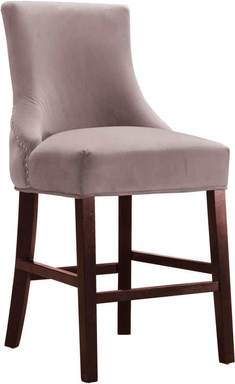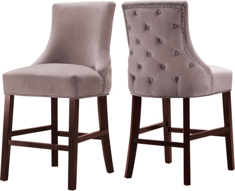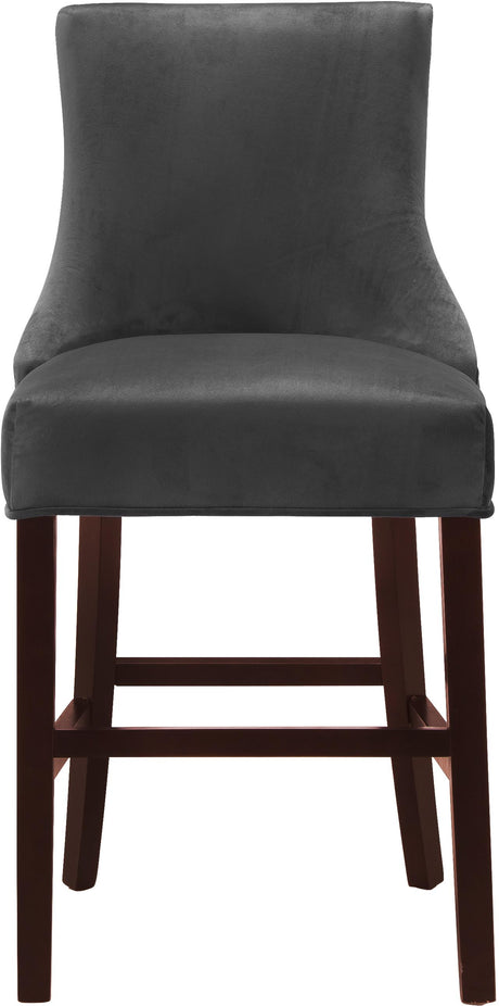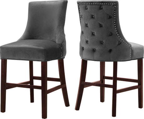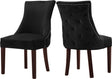 Dine in luxurious style with the Hannah velvet dining chair. Featuring a curved high back, plush cushioned seat and deep tufted velvet upholstery studded with chrome nailheads, this dining chair is sure to take your dining experience to a whole new level. Espresso wood legs provide sturdy support and complement the stunning upholstery for a sleek, contemporary design.