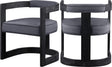 Guests will be overly impressed when you seat them in this Regency velvet dining chair. Solid wood construction lends the chair a durable start while its dark grey finish gives it an upscale, almost affluent look. This contemporary chair is outfitted with soft grey velvet cushioning against its rounded back and seat, ensuring comfort as you dine.