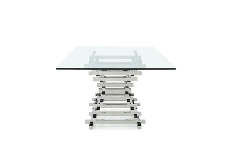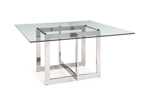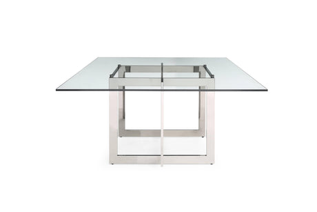 Cyrene Stainless Steel & Clear Glass Dining Table