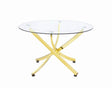 Beckham Round Dining Table Brass and Clear is backordered and will ship as soon as it is back in stock.