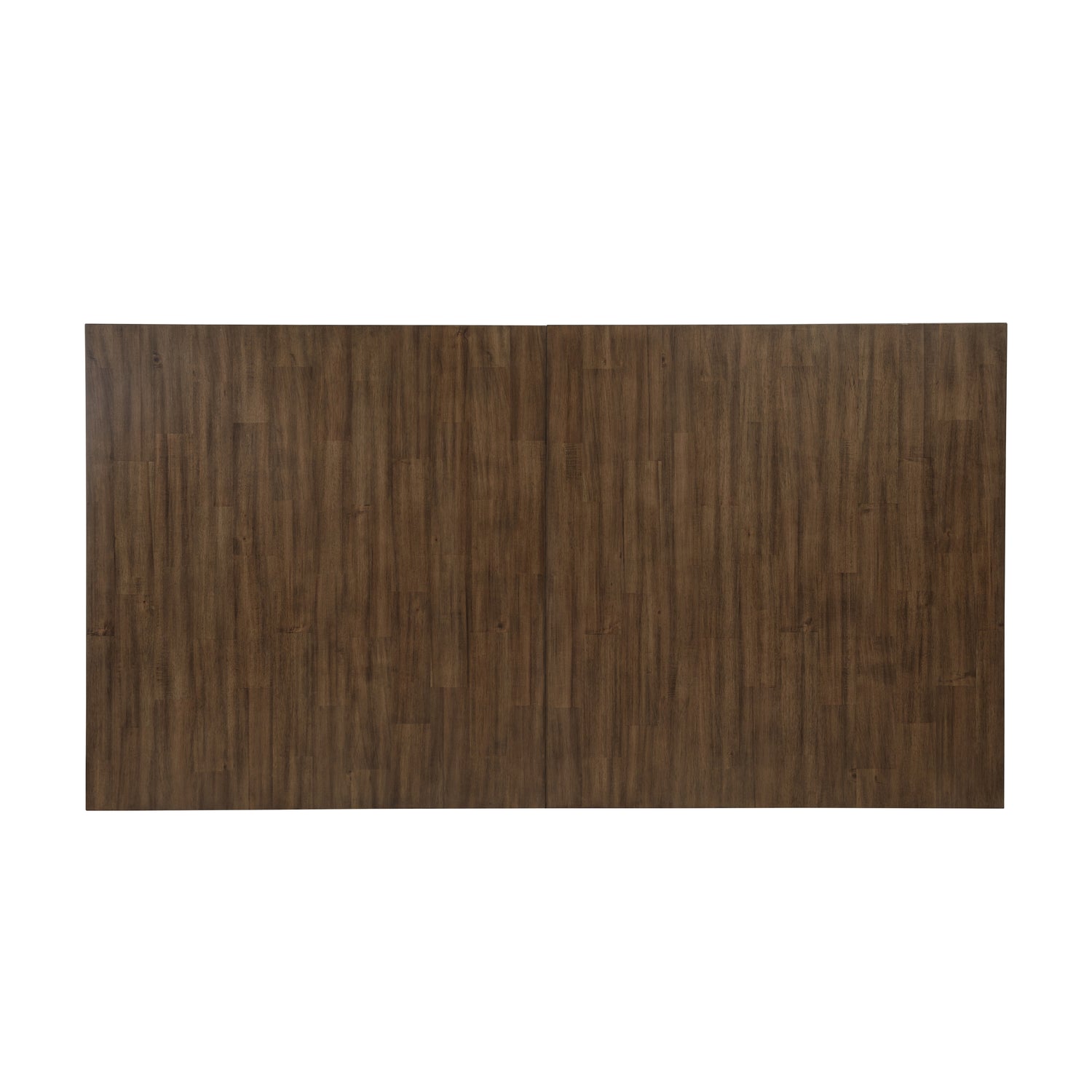 The Mariana Rectangle Dining Table in Vintage Mocha is expertly crafted from solid Rubberwood, premium manufactured woods, and authentic Acacia wood veneers, ensuring both durability and timeless beauty. Its meticulous multi-step finish in a vintage Mocha creates a rich, time-worn appearance that adds depth and character to any dining space. The hand-distressed details, including rasping, clefting, and threading, give it a unique, artisanal charm. Blending traditional elegance with rustic and colonial craftsmanship, this table brings a warm and inviting ambiance to classic and cozy interiors. With its generous surface area and an included 18" leaf, the table extends from 78" to 96", comfortably seating up to 8 guests, making it perfect for family meals or larger gatherings. A stunning focal point for any dining room, this table combines beauty, durability, and versatility, making it a practical and stylish choice for any home.