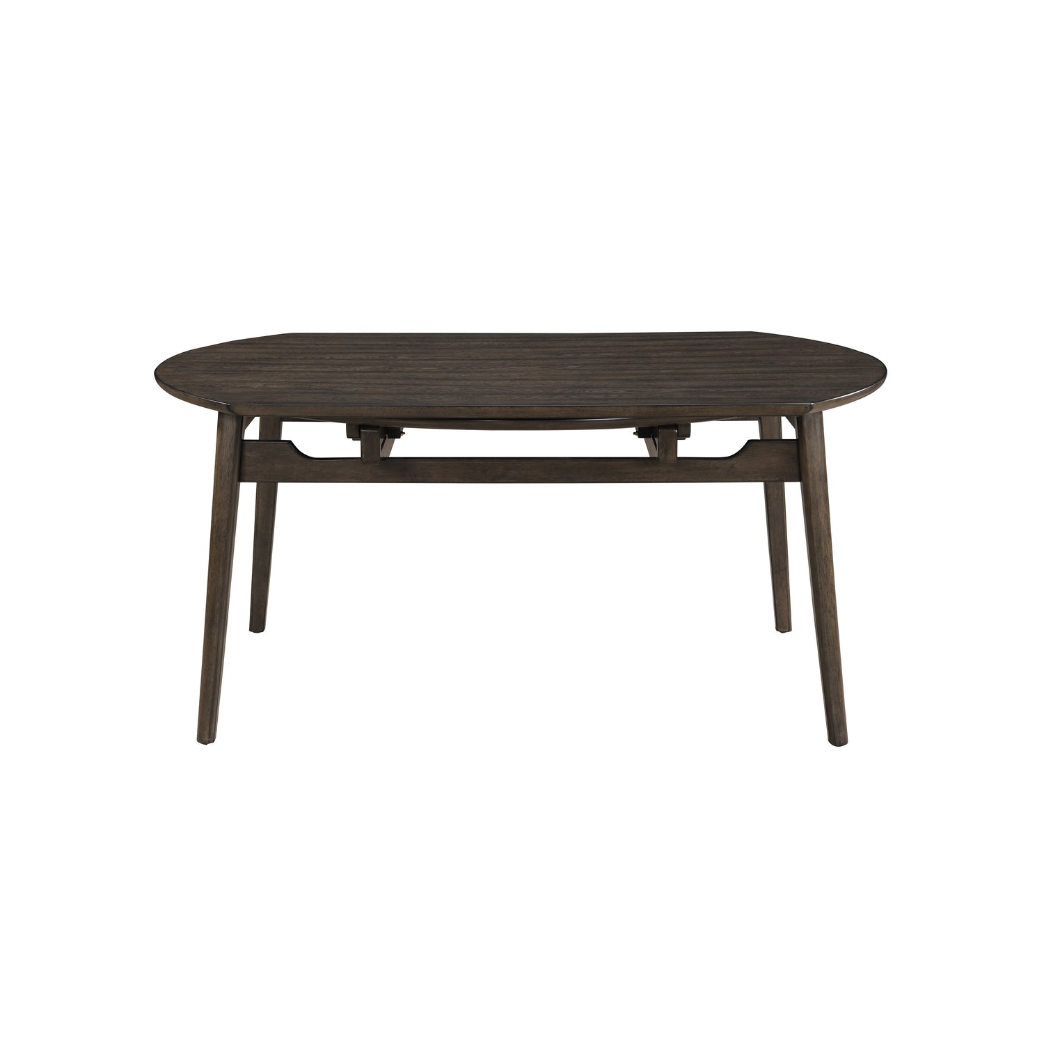 The Rex Mid-Century Modern 65" Round Dining Table with Self-Storing Leaves in Walnut Brown is a versatile and stylish addition to any dining space. Crafted from solid rubberwood, manufactured woods, and oak veneers, this table ensures exceptional stability and longevity. Its classic mid-century modern design features clean lines, rounded edges, and angled, tapered legs, embodying a timeless elegance. The multi-step walnut brown finish, hand-rubbed with a clear topcoat, enhances the natural beauty of the wood grain. This innovative dining table includes self-storing leaves that extend to provide roomy seating for six, making it perfect for both intimate meals and larger gatherings.