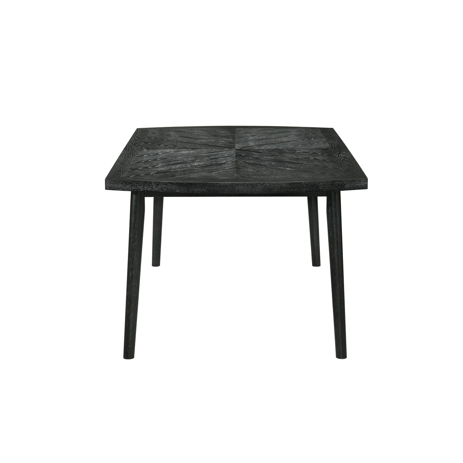 The Skyline Rectangle Dining Table in Onyx blends craftsmanship with modern appeal, making it a striking centerpiece. Built from solid Rubberwood, engineered woods, and Ash veneers, it offers style and durability. The Onyx Black finish with gray glazing highlights the wood grain. Gently rounded corners and tapered legs complement the book-matched veneer tabletop. At 78" long, it seats six, ideal for meals and gatherings. A perfect balance of function, style, and lasting quality for your dining space. ?