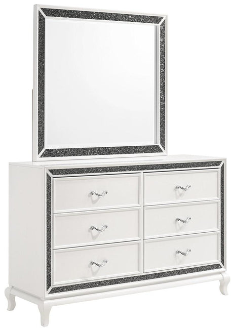Felicity 6-drawer Dresser with LED Mirror White High Gloss