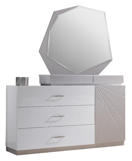 J&M Furniture Verona Dresser and Mirror in White Lacquer
