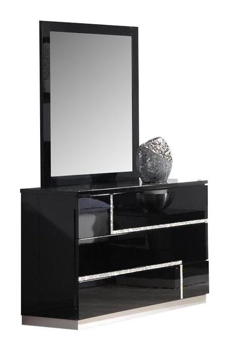 J&M Furniture Roma Dresser and Mirror in Black & Grey Lacquer