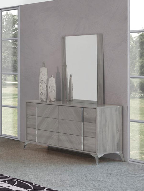 J&M Furniture Turin Dresser and Mirror in Light Grey & Black Lacquer