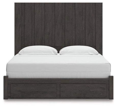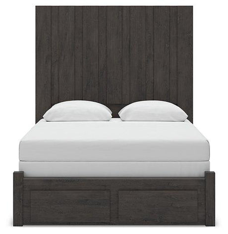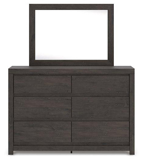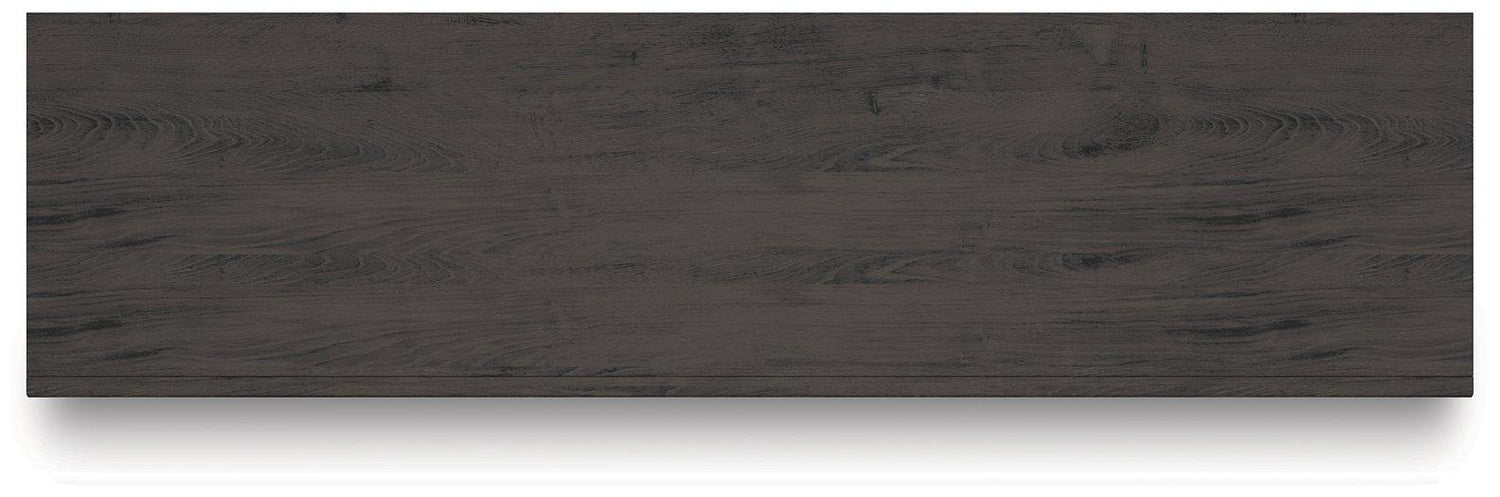 - Dark charcoal finish over replicated oak grain
