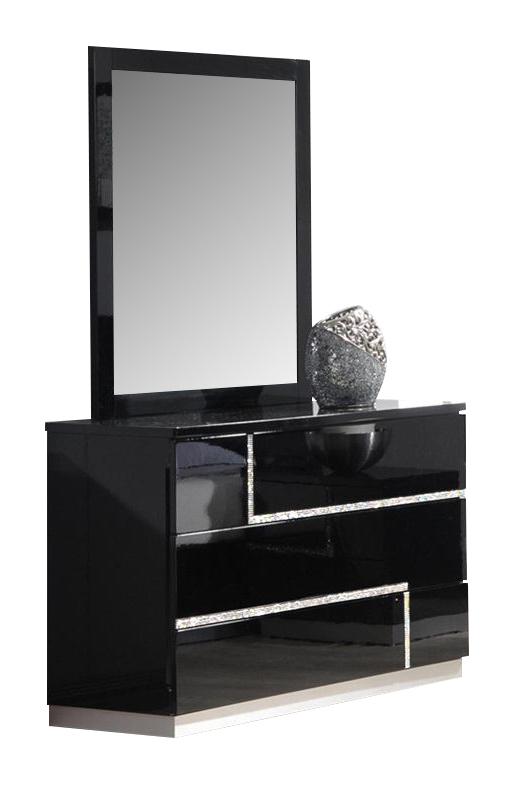 J&M Lucca Dresser and Mirror in Black Lacquer