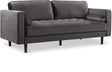 Stretch out and relax on this handsome Emily sofa. This Meridian Furniture sofa features wooden legs and a sturdy frame, so it's built for the long haul. Its vibrant grey velvet upholstery is a jewel tone that's simply stunning and that adds a pop of color to your day. The sofa's back cushions are plump and filled with premium material to cradle you in comfort, and it comes with two roll-style pillows for helping you prop up and unwind.