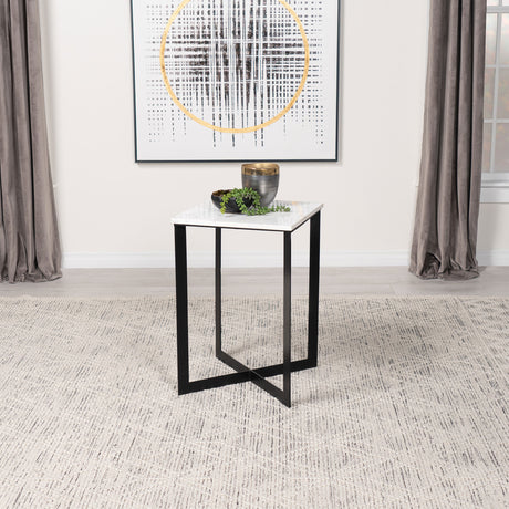Noemie Round Accent Table with Marble Top White and Gunmetal