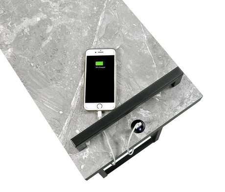Lainey Faux Marble Round Top End Table Grey and Gunmetal