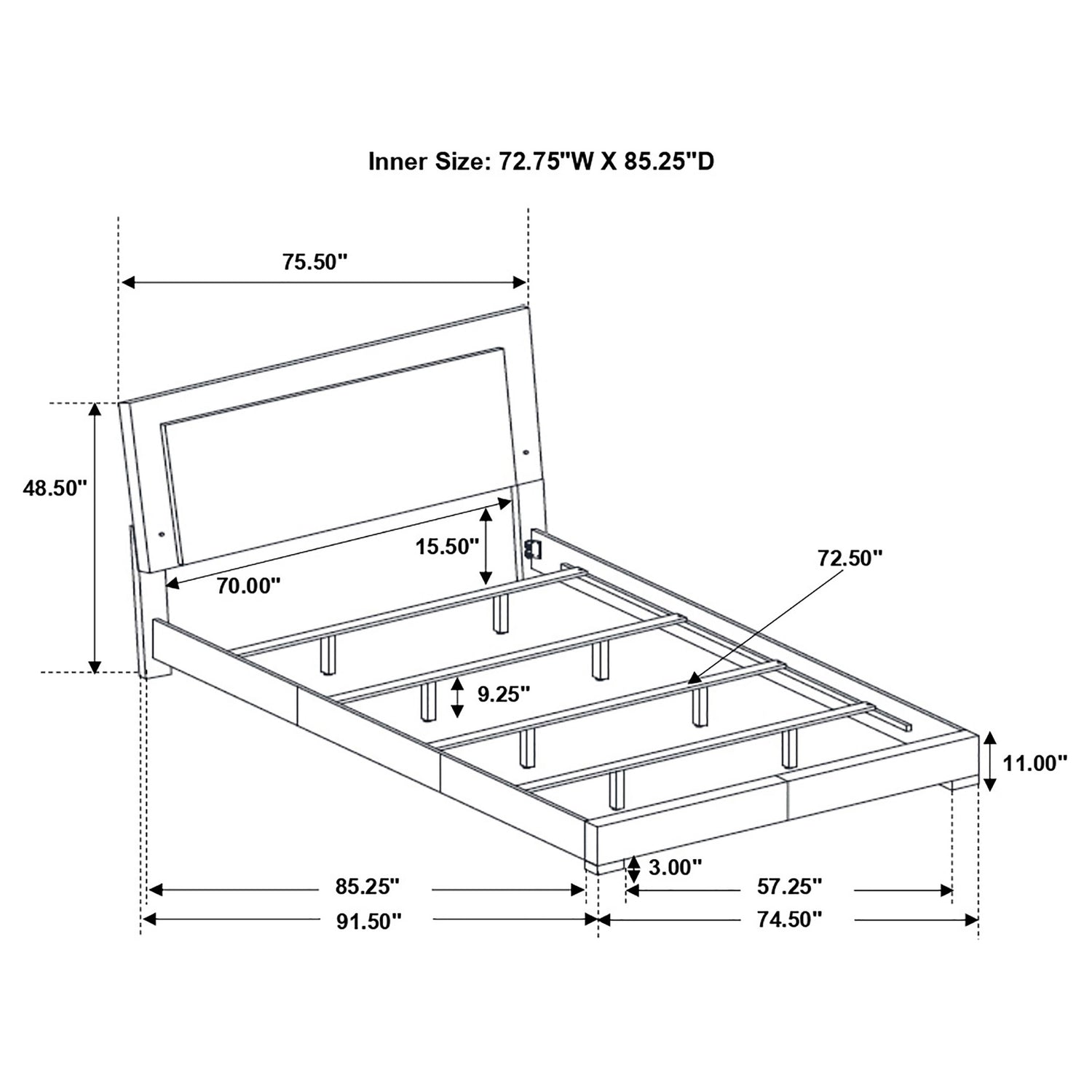 Sleek lines and integrated lighting define this contemporary bedroom set. The bed showcases a white high gloss headboard with built-in blue LED lighting, activated by a touch switch, and a faux leather upholstered frame for added refinement. Paired with a coordinating dresser mirror featuring perimeter LED lights and a touch sensor, the set balances utility with clean, modern design. Chrome hardware and smooth-glide drawers complete the polished look.