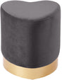 Show your room a little love with this heart-shaped ottoman/stool. The beautiful grey-colored upholstery covering the top and sides of this ottoman is sumptuous to the feel, ensuring its luxurious look from all angles. The goldtone base complements the grey of the stool, adding a distinct contrast to the presentation. The velvet material is rich and sleek, so it pampers your feet while you prop them up at day's end.