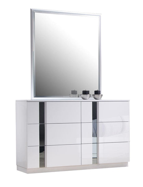 J&M Milan Dresser and Mirror in White Lacquer