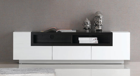J&M TV002 TV Stand in White High Gloss & Dark Oak