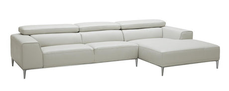J&M Furniture Serena Premium Leather Sectional in Right Hand Facing Chaise in Light Grey