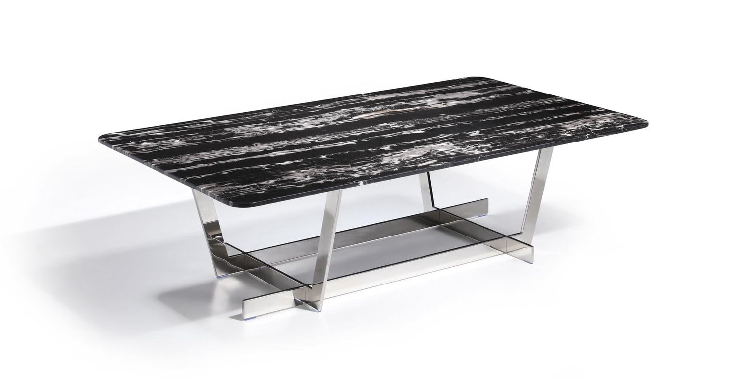 J&M Furniture Carrara Marble Coffee Table in Marble Black and Silver
