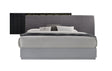 - Headboard features black gloss that is complimented with plush grey upholstery