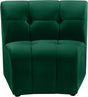 Invest in your home's comfort with this Limitless chair. This modular unit offers tons of flexibility in the number of ways that you can put each piece in the Limitless collection together to get the ideal customized look. Upholstered in green velvet, this beautiful piece is soft and cool to the touch, so you can feel comfortable from every angle. Button and channel tufting add to this unit���s upscale look and contemporary charm.