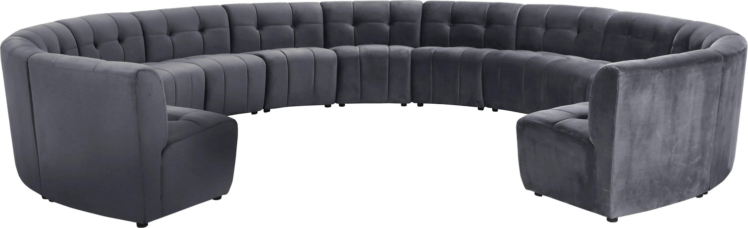 Invest in your home's comfort with this Limitless 13 Piece Sectional. This modular unit offers tons of flexibility in the number of ways that you can put each piece in the Limitless collection together to get the ideal customized look. Upholstered in grey velvet, this beautiful piece is soft and cool to the touch, so you can feel comfortable from every angle. Button and channel tufting add to this unit���s upscale look and contemporary charm.